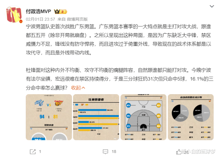 广东男篮队史首次输给宁波男篮,最终还惨败13分,此役之前广东对阵宁波是一波八连胜。值得一提的是宁波在终结广东交手全败之前,刚刚终结了对阵辽宁的全败纪录,本赛季的宁波的确算得上大黑马。